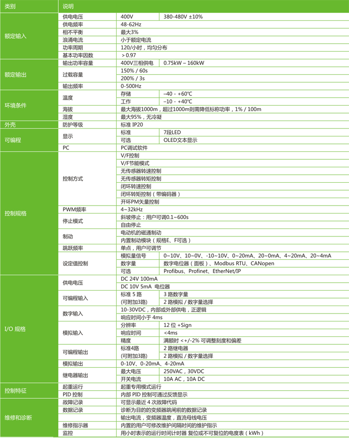 ◆強大的過載能力:在150%過載情況下,可持續運行60秒;
